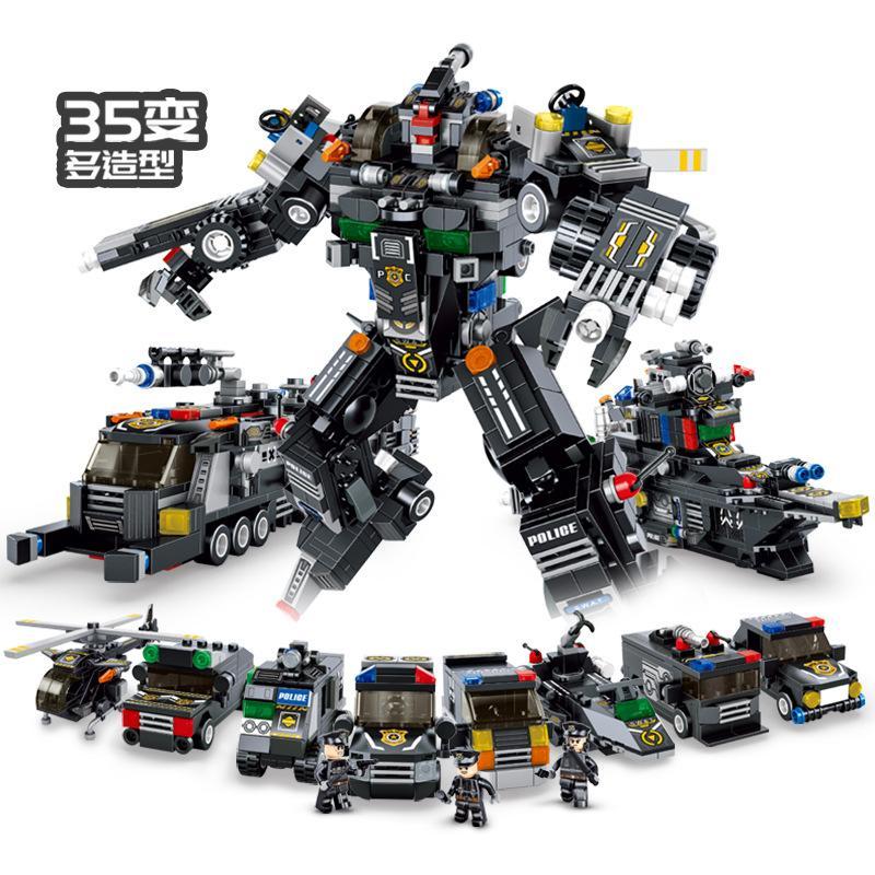 - Đội Cảnh Sát Biến Hình: Bé có thể tạo ra một đội cảnh sát với các phương tiện khác nhau (xe bọc thép, xe jeep, trực thăng) để truy đuổi tội phạm, sau đó biến hình thành robot chiến đấu để đối phó với những tình huống nguy hiểm.