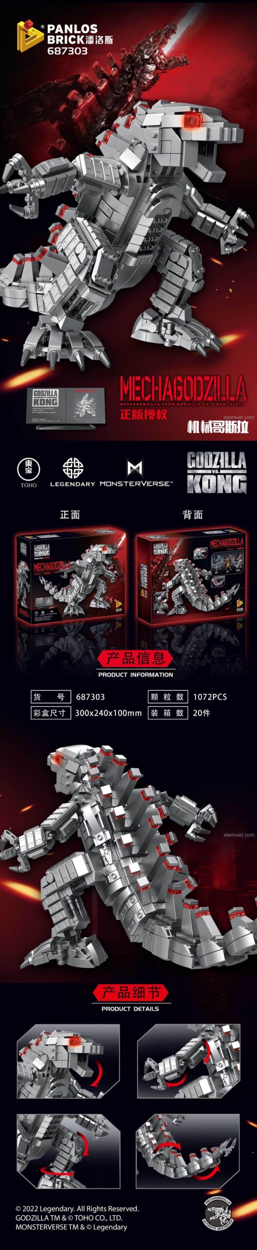 Bộ lắp ghép Panlos Brick 687303 Mô hình MechaGodzilla Q-bản này tập trung vào việc xây dựng mô hình robot khổng lồ và không đi kèm bất kỳ minifigure nào.