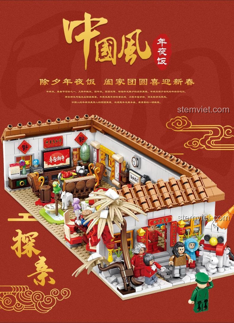 Bộ Lắp Ghép PanlosBrick 610009 Bữa Cơm Tất Niên (1559 Mảnh Ghép) – Tết Đoàn Viên và Chủ Đề Tết Truyền Thống