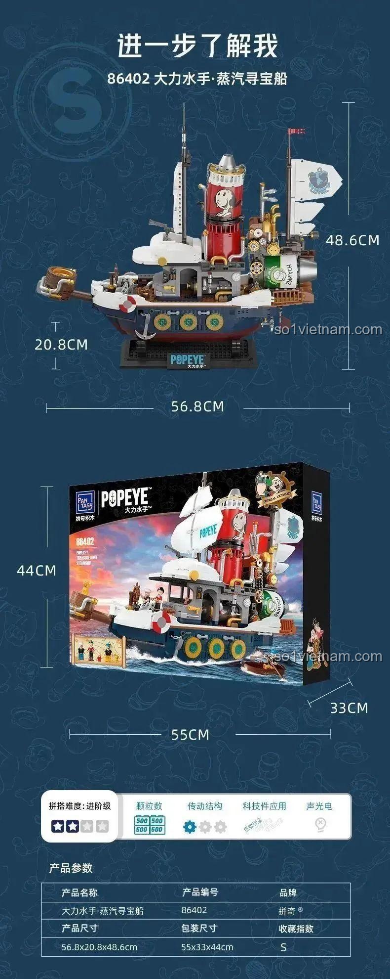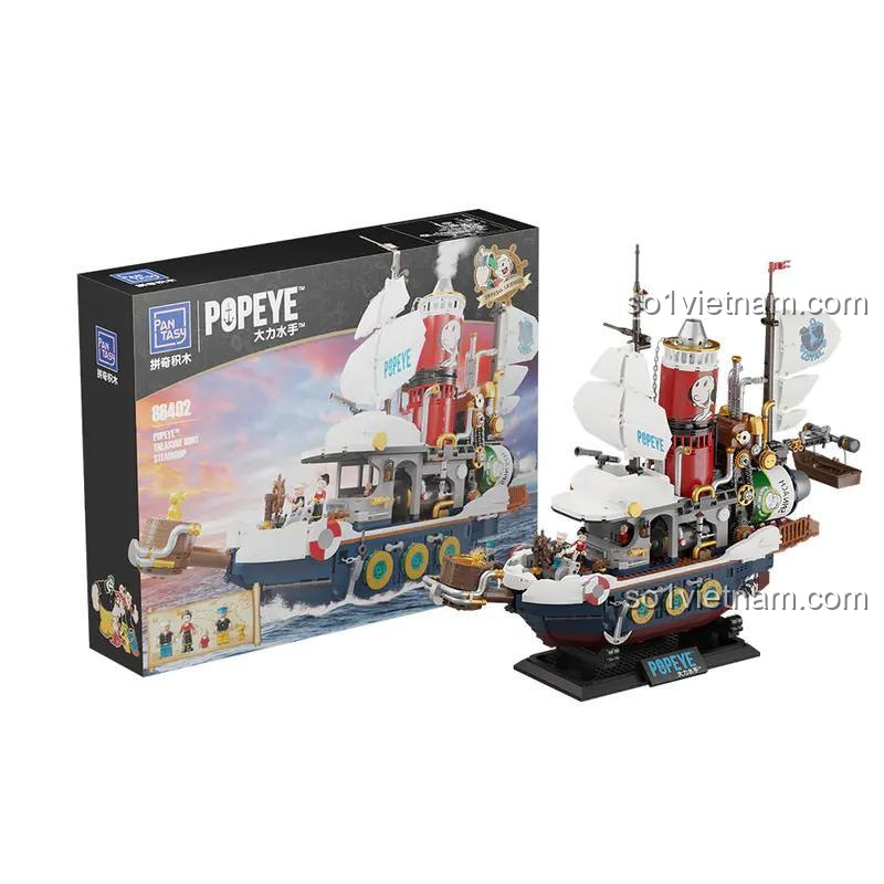 Bộ lắp ghép Pantasy 86402 Popeye: Thuyền Hơi Nước Tìm Kho Báu gây ấn tượng mạnh mẽ với thiết kế chi tiết và chân thực, mô phỏng hoàn hảo con thuyền huyền thoại trong câu chuyện Popeye.