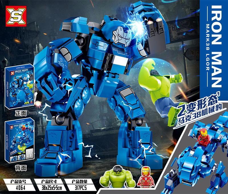 Mang sức mạnh của Iron Man đến tay bé với bộ lắp ghép Phản Hạo克机甲 (Iron Man: Mark 38 LGOR) từ 双象SX (mã 4064). Bộ sản phẩm gồm 317 mảnh ghép chất lượng cao, cho phép bé xây dựng mô hình Iron Man Mark 38 Igor với hai dạng lắp ráp độc đáo. Đi kèm là Minifigure Iron Man và Hulk, giúp bé thỏa sức sáng tạo những câu chuyện siêu anh hùng. Chất liệu nhựa ABS an toàn, tương thích LEGO®, đây là món quà tuyệt vời cho các bé trai từ 6 tuổi yêu thích Marvel. Giá tốt, chất lượng đảm bảo, mang đến trải nghiệm lắp ráp và chơi đùa đầy hứng khởi.