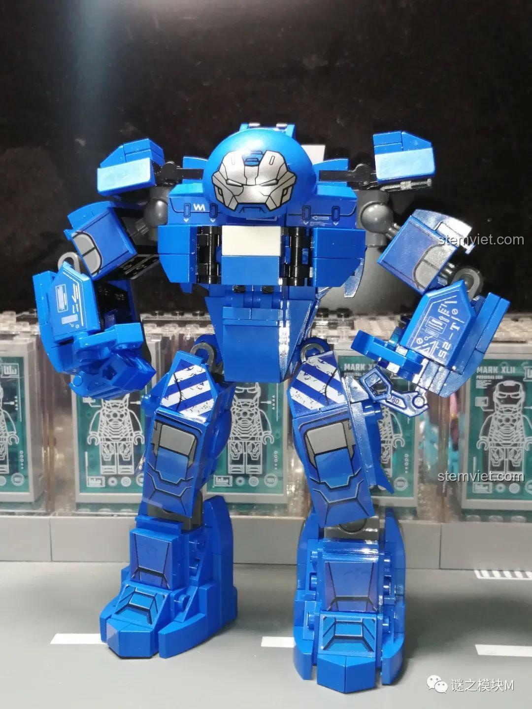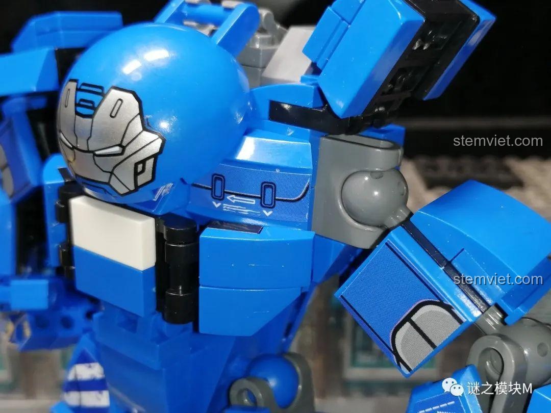 Bộ lắp ghép Phản Hạo克机甲 (Iron Man: Mark 38 LGOR) nổi bật với thiết kế lấy cảm hứng từ bộ giáp Mark 38 Igor của Iron Man, một bộ giáp hạng nặng chuyên dùng để đối phó với Hulk. Mô hình có tông màu xanh dương chủ đạo, tạo cảm giác mạnh mẽ và uy lực.