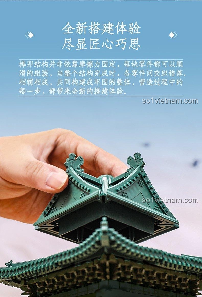 Cấu trúc ghép mộng là một kỹ thuật mộc cổ truyền của Trung Quốc, cho phép các mảnh ghép lồng vào nhau mà không cần dùng keo hay đinh. Điều này không chỉ tạo ra một mô hình cực kỳ chắc chắn mà còn mang lại trải nghiệm lắp ráp độc đáo, đòi hỏi sự khéo léo và tư duy không gian, giúp bạn hiểu sâu hơn về nghệ thuật kiến trúc cổ.