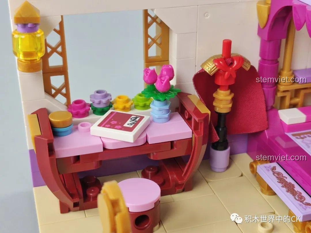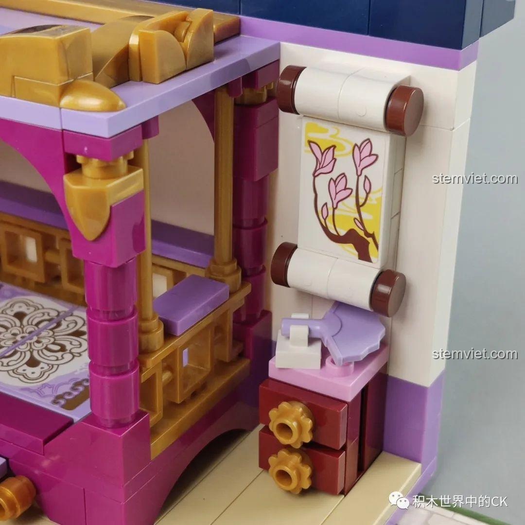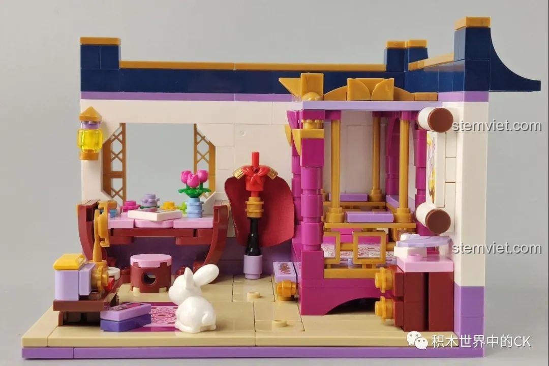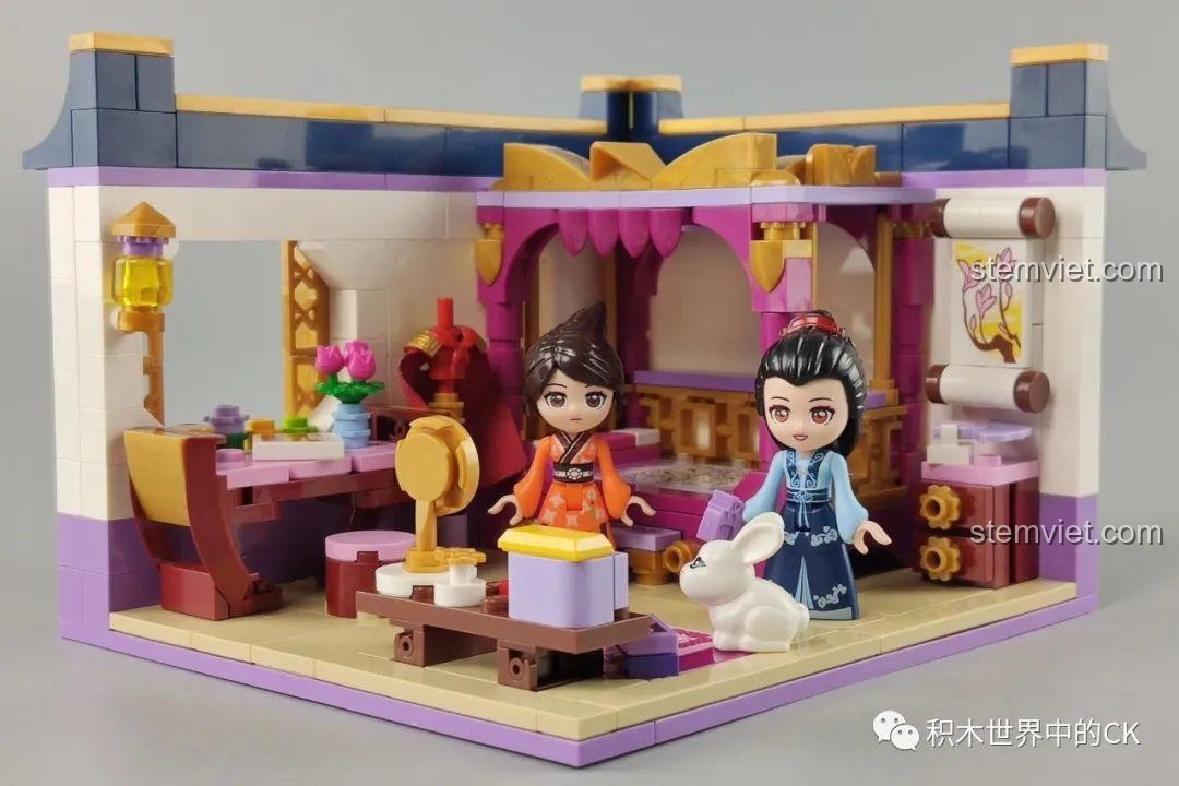 Sự hiện diện của 2 minifigure Hoa Mộc Lan và Mộc Lan Tỷ Tỷ cùng các phụ kiện như bàn trang điểm, giường, gương, thỏ, lược, bình hoa, và cuộn tranh giúp bé dễ dàng tạo ra các kịch bản chơi nhập vai đa dạng. Bé có thể tưởng tượng Mộc Lan đang chuẩn bị trang phục trước khi ra trận, hay Mộc Lan Tỷ Tỷ đang chăm sóc em gái. Kiểu chi tiết tương thích LEGO® cũng mở ra khả năng kết hợp với các bộ đồ chơi khác, giúp bé mở rộng thế giới sáng tạo của mình.