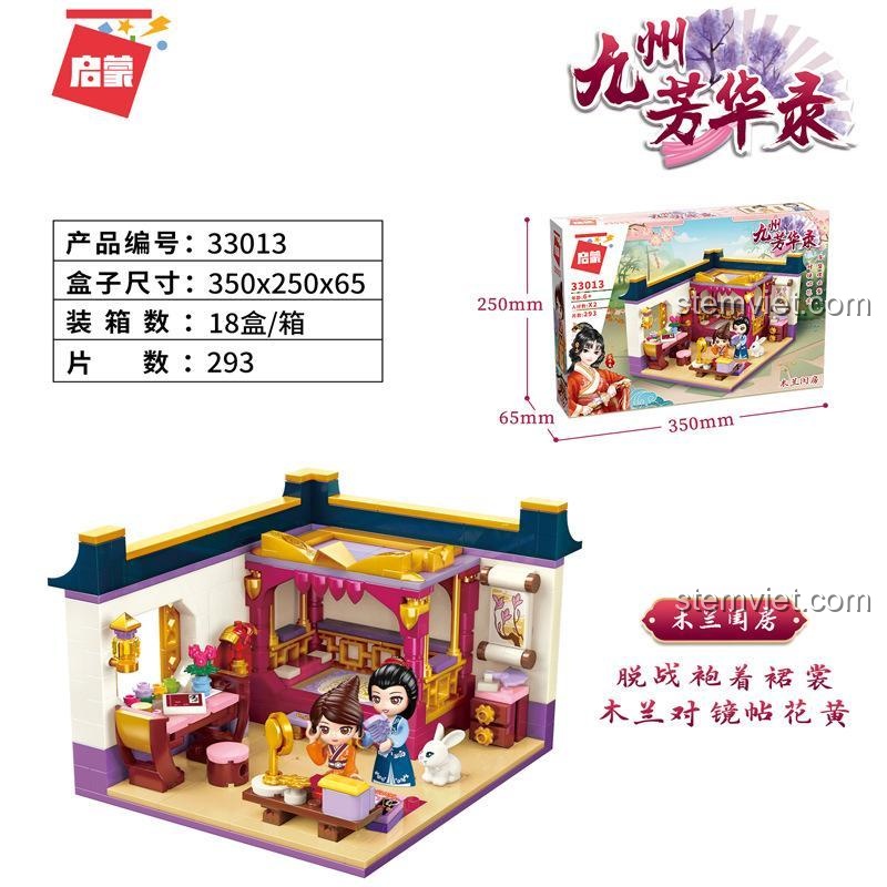 Chào mừng các mẹ và bé gái 6 tuổi+ đến với một thế giới cổ tích ngay trong căn phòng của mình! Bộ lắp ghép QMAN 33013 Phòng Ngủ Hoa Mộc Lan không chỉ là một món đồ chơi thông thường mà còn là cánh cửa mở ra không gian cổ trang đầy mộng mơ, nơi bé có thể thỏa sức sáng tạo và khám phá. Với 293 mảnh ghép chi tiết, đây là cơ hội tuyệt vời để bé gái của bạn đắm chìm vào câu chuyện huyền thoại của nàng Mộc Lan, tái hiện lại những khoảnh khắc đời thường của một nữ anh hùng.