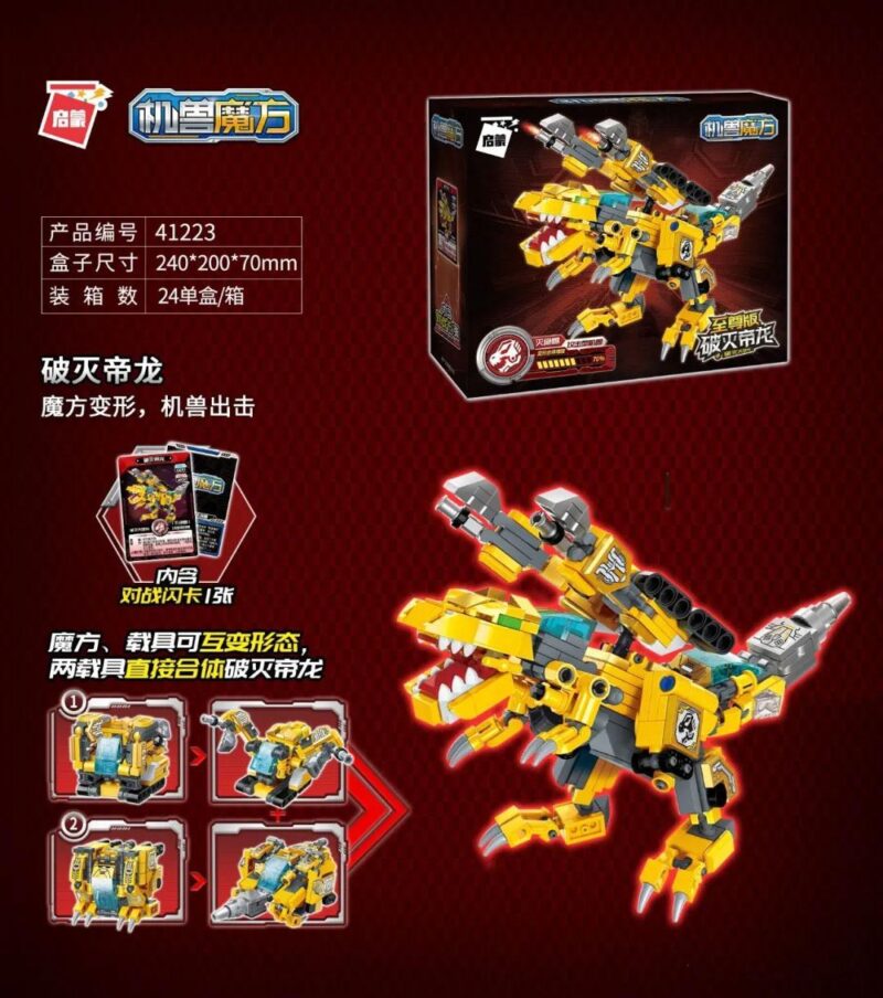 Sản phẩm đồ chơi mô hình QMAN 41223 có thể biến hình thành 3 dạng chính: hai khối lập phương ban đầu, hai phương tiện chiến đấu riêng biệt (từ hai khối lập phương), và cuối cùng là mô hình Rồng Bạo Chúa khổng lồ khi hai phương tiện kết hợp lại. Khả năng biến hình đa dạng này mang lại sự thú vị và giá trị chơi lâu dài.