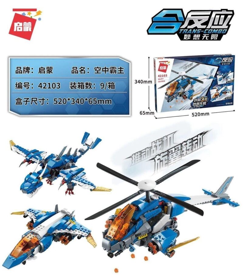 Chào mừng bạn đến với thế giới đầy phiêu lưu của Bộ Lắp Ghép QMAN 42103 Trans-Combo Không Trung! Đây không chỉ là một [bộ lắp ghép Trực thăng chiến đấu] thông thường, mà còn là cánh cửa mở ra những cuộc hành trình kỳ thú trên bầu trời. QMAN, một thương hiệu đồ chơi lắp ráp nổi tiếng từ Trung Quốc, luôn mang đến những sản phẩm chất lượng cao với thiết kế độc đáo và khả năng sáng tạo không giới hạn. Bộ Trans-Combo này là minh chứng rõ ràng nhất cho triết lý đó, với khả năng biến hình linh hoạt từ trực thăng, máy bay phản lực đến rồng chiến đấu.