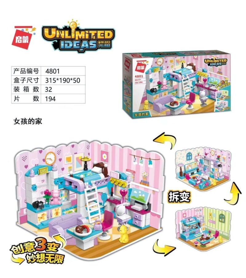 Bộ lắp ghép QMAN 4801 thuộc series “Unlimited Ideas” của hãng ENLIGHTEN (QMAN), nổi tiếng với các sản phẩm khuyến khích tư duy mở và khả năng biến hóa đa dạng. Ra mắt vào năm 2019, sản phẩm nhanh chóng trở thành lựa chọn yêu thích của nhiều gia đình nhờ sự kết hợp hoàn hảo giữa tính giáo dục và giải trí. Mỗi mảnh ghép trong bộ đồ chơi lắp ráp QMAN 4801 đều được thiết kế tỉ mỉ, giúp bé dễ dàng lắp ráp và tháo rời, từ đó tự do sáng tạo nên những không gian sống độc đáo theo phong cách riêng của mình. Hãy cùng bé yêu khám phá và xây dựng nên căn phòng mơ ước của bé gái, nơi mỗi ngày đều là một cuộc phiêu lưu mới!