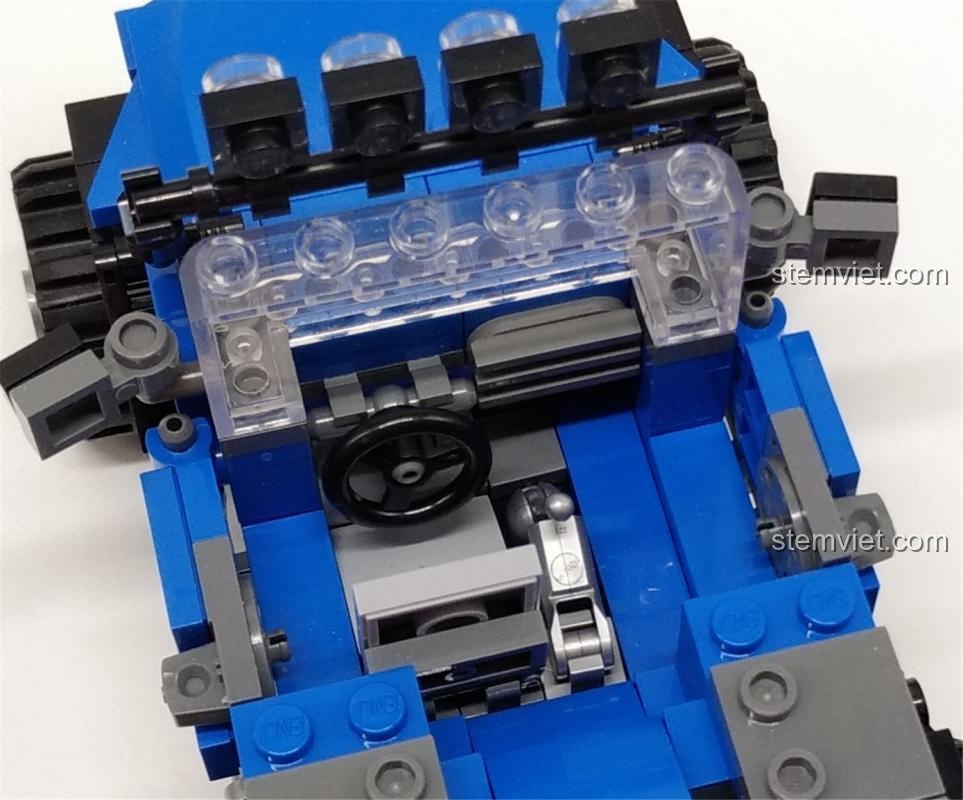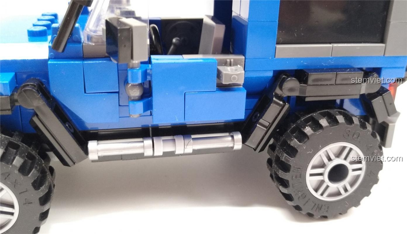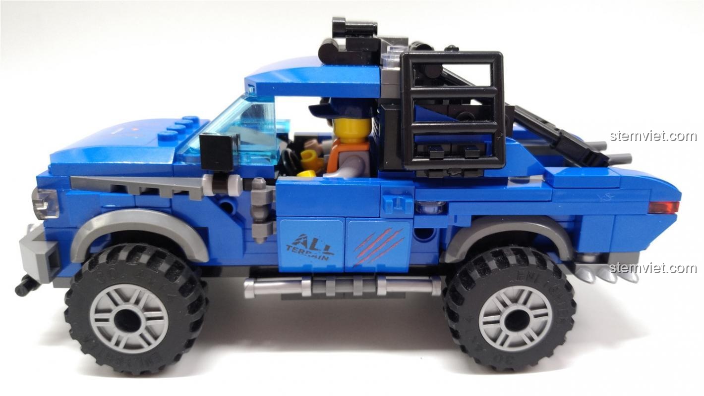 Không chỉ dừng lại ở khủng long, bộ đồ chơi mô hình QMAN này còn cho phép bé lắp ráp thành hai mẫu xe địa hình ấn tượng. Chiếc xe SUV địa hình và xe bán tải đều sở hữu thiết kế hầm hố, với lốp xe lớn, đèn pha phụ và các chi tiết nội thất như vô lăng, ghế ngồi, cần số. Đặc biệt, các cửa xe có thể mở ra, tăng thêm tính tương tác và chân thực cho mô hình. Sự kết hợp giữa các mảnh ghép màu xanh dương, xám và đen không chỉ tạo nên vẻ ngoài bắt mắt mà còn giúp bé dễ dàng nhận biết và phân loại các bộ phận trong quá trình lắp ráp, từ đó rèn luyện khả năng quan sát và tư duy không gian.