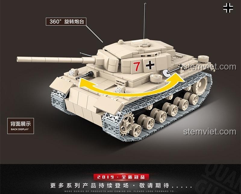 Từng chi tiết nhỏ trên bộ đồ chơi lắp ghép QUANGUAN100067 đều được chăm chút kỹ lưỡng, từ tháp pháo xoay 360 độ, hệ thống bánh xích chuyển động mượt mà, cho đến cửa buồng lái có thể mở ra. Đặc biệt, mô hình còn có động cơ V12 được tái hiện chi tiết, mang lại cảm giác chân thực như đang lắp ráp một chiếc xe tăng thật. Đây chắc chắn sẽ là một điểm nhấn nổi bật trong bộ sưu tập của bất kỳ tín đồ quân sự nhí nào.