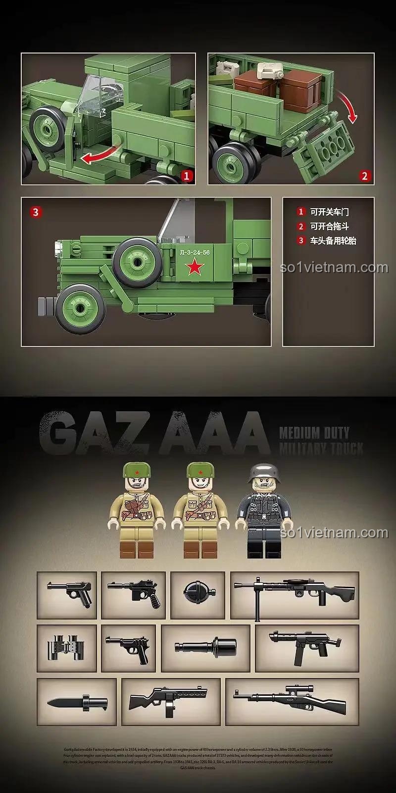 ⚙️ Xe tải quân sự GAZ AAA đồ chơi lắp ráp này có những tính năng đặc biệt nào?