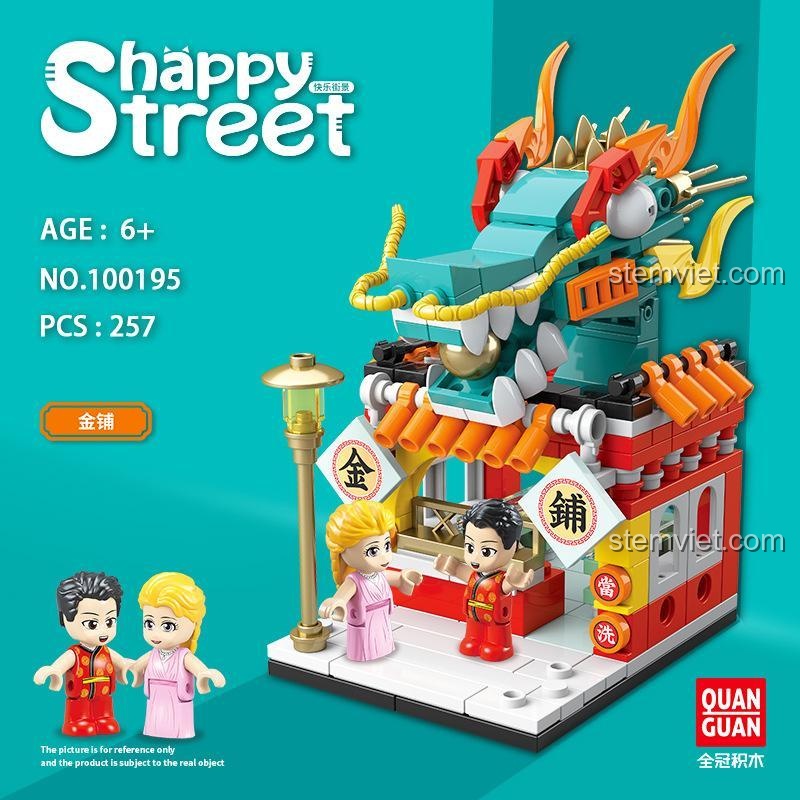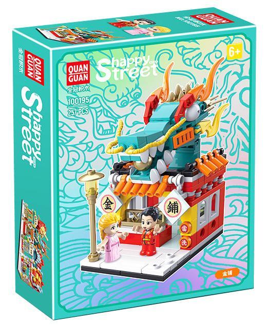 Chào mừng bạn đến với thế giới của những điều kỳ diệu và sáng tạo! Bộ đồ chơi Cửa hàng Vàng QUANGUAN 100195 không chỉ là một bộ lắp ghép thông thường, mà còn là cánh cửa mở ra một phần của “Phố Xá Hạnh Phúc” – một series đồ chơi xây dựng độc đáo từ hãng QUANGUAN. Được ra mắt vào năm 2022, bộ lắp ghép này nhanh chóng trở thành một điểm nhấn ấn tượng, mang đậm phong cách kiến trúc Á Đông truyền thống nhưng vẫn giữ được nét hiện đại, tươi vui.