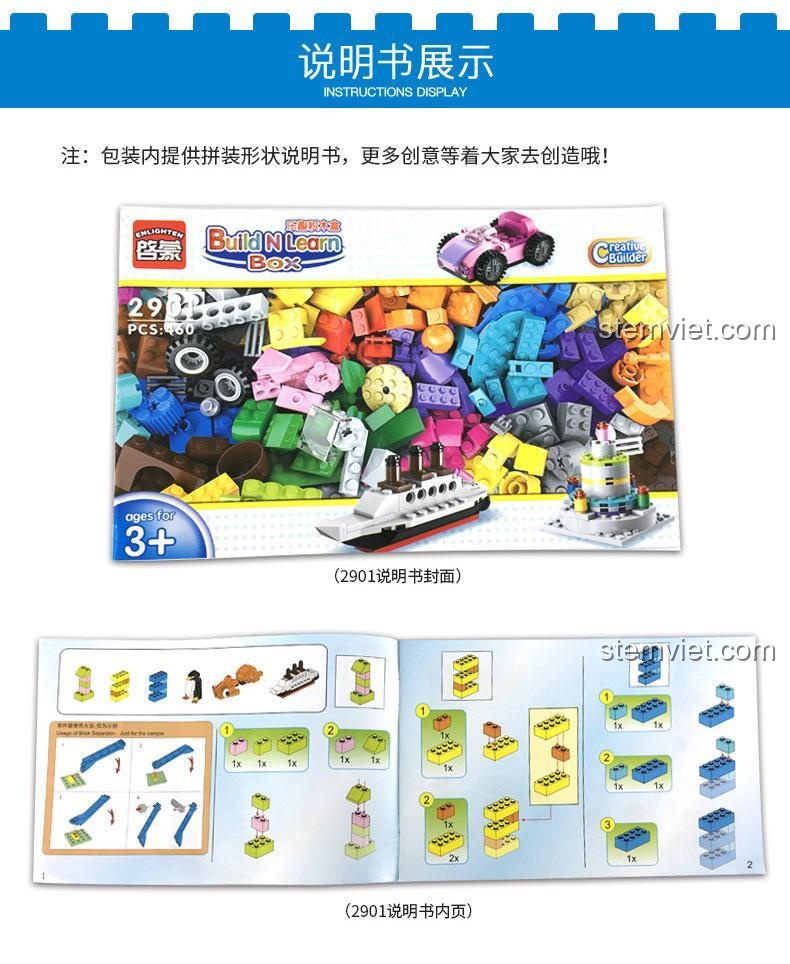 ✨Khám Phá Thế Giới Sáng Tạo Cùng Bộ Lắp Ghép 启蒙QMAN 2901 Build N Learn Box – 460 Chi Tiết!✨