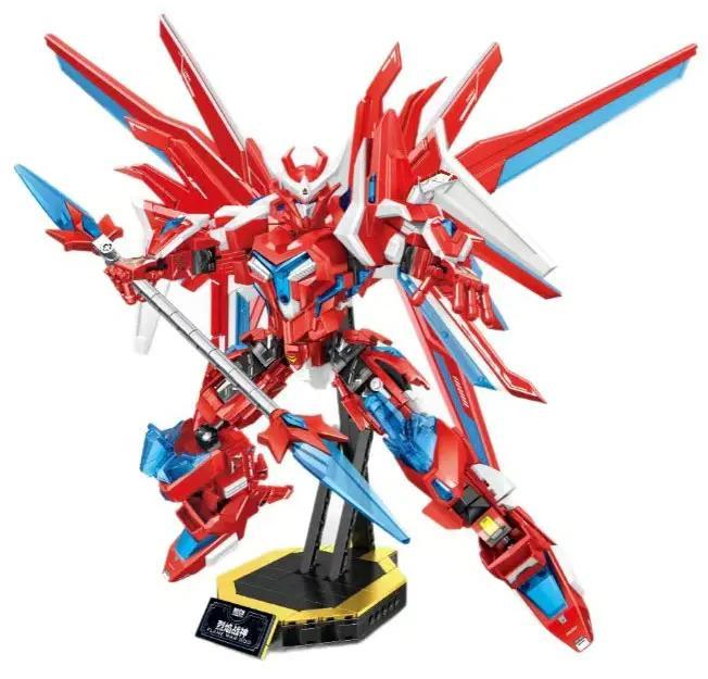 Quốc Phong Cơ Giáp Liệt Diễm Chiến Thần K0950 nổi bật với thiết kế theo phong cách Quốc Phong độc đáo, đôi cánh rồng lửa ấn tượng và vũ khí chiến đấu đi kèm. Mô hình này được thiết kế để bé có thể tùy chỉnh và sáng tạo thêm, mang đến trải nghiệm chơi đa dạng.
