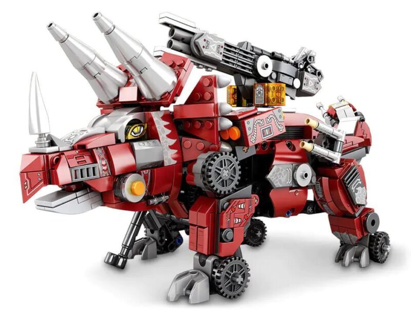 - Mecha Triceratops: Mô hình khủng long ba sừng cơ khí với các chi tiết khớp nối linh hoạt, sừng nhọn và vũ khí laser mạnh mẽ, mang dáng vẻ của một chiến binh cổ đại được nâng cấp công nghệ.