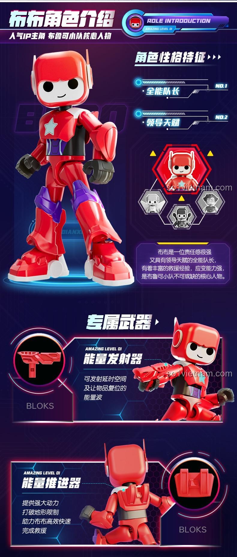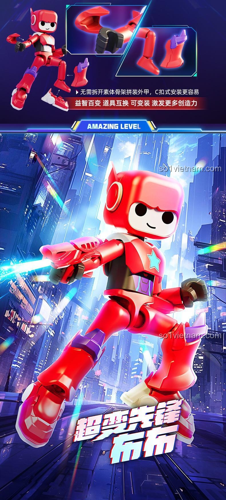 Robot Bubu 74805 có khả năng thay đổi giáp và vũ khí, mang đến trải nghiệm chơi đa dạng và kích thích sự sáng tạo của bé.