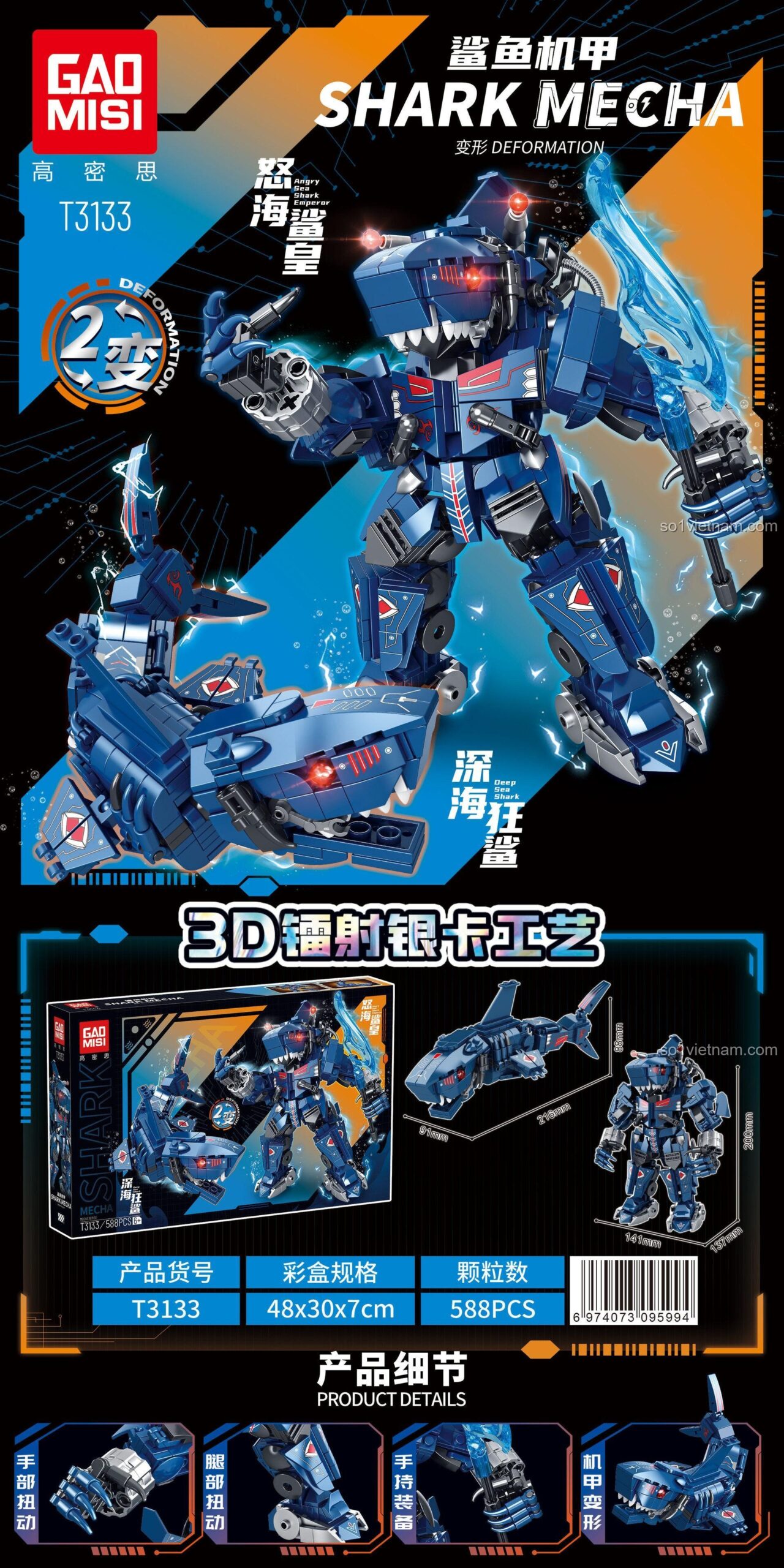 Bộ Lắp Ghép Robot Cá Mập Biến Hình GAOMISI T3133 (588 Mảnh)