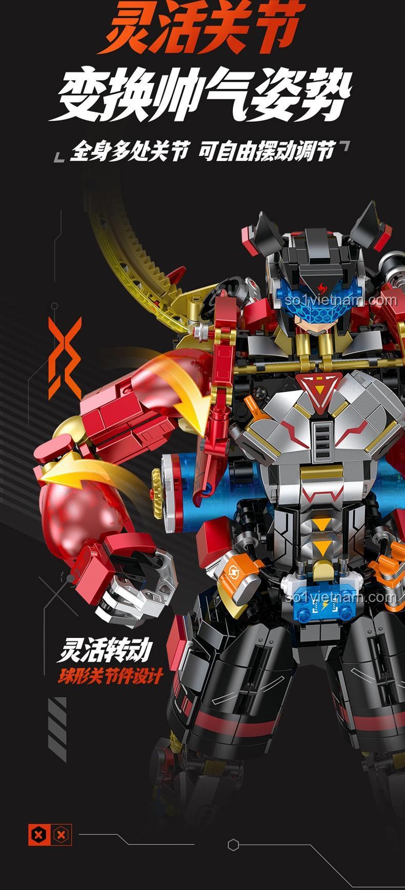 - Khớp nối linh hoạt: Các khớp nối trên cơ thể robot được thiết kế thông minh, cho phép cử động đa chiều, tạo ra nhiều tư thế chiến đấu ấn tượng, tăng cường khả năng nhập vai cho trẻ.