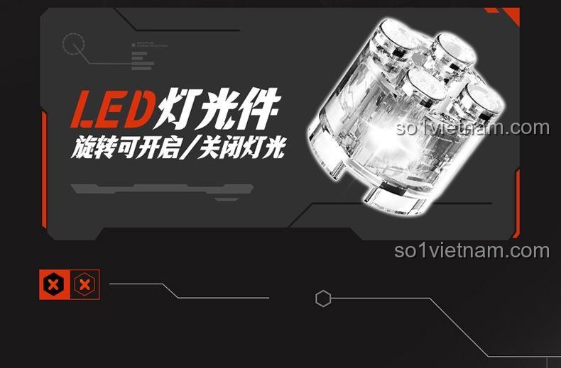 - Hiệu ứng đèn LED sống động: Nhiều bộ phận trên robot được tích hợp đèn LED, tạo hiệu ứng ánh sáng lung linh, huyền ảo, đặc biệt ấn tượng khi trưng bày trong điều kiện thiếu sáng.