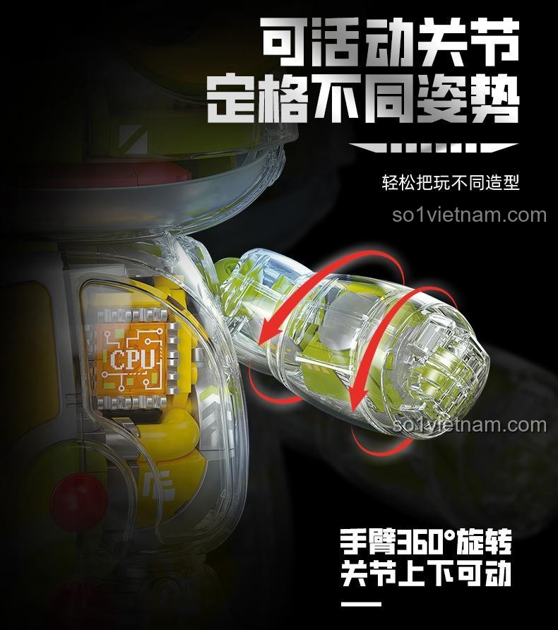 - Khớp nối linh hoạt: Tay xoay 360 độ, khớp tay và chân cử động linh hoạt, cho phép tạo nhiều dáng.