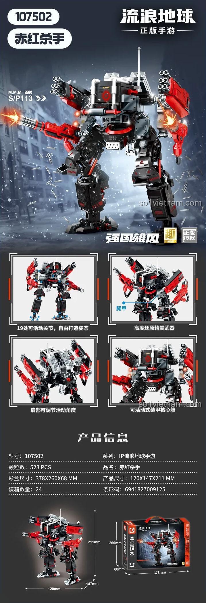 Chào mừng các chiến binh nhí đến với thế giới của SEMBO 107502 “Xích Hồng Sát Thủ”! Lấy cảm hứng từ tựa game đình đám “Lưu Lạc Địa Cầu”, bộ lắp ghép này mang đến một robot chiến đấu đầy uy lực, sẵn sàng chinh phục mọi thử thách. Với 523 chi tiết tỉ mỉ, “Xích Hồng Sát Thủ” không chỉ là một món đồ chơi, mà còn là biểu tượng của sự sáng tạo và trí tưởng tượng không giới hạn.