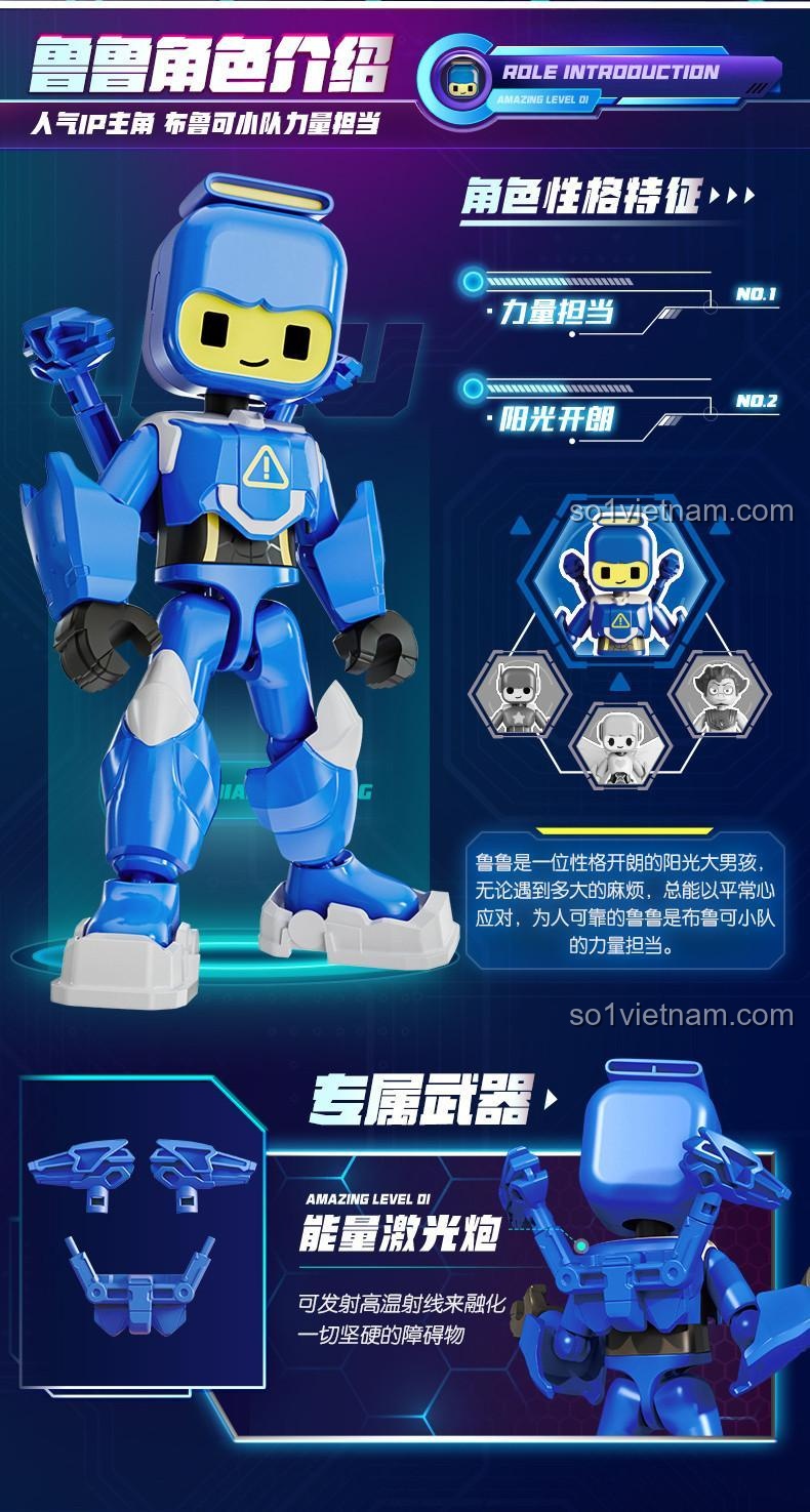 Robot LULU là nhân vật trung tâm của series “百变布鲁可神奇版” (Bách Biến Bố Lỗ Khả Thần Kỳ Bản), một thế giới nơi trí tưởng tượng và sự sáng tạo không có giới hạn. LULU là một robot đầy năng lượng, luôn sẵn sàng đối mặt với mọi thử thách. Với thiết kế thông minh và khả năng biến hình, LULU mang đến những câu chuyện phiêu lưu kỳ thú, khuyến khích trẻ em khám phá và nhập vai.