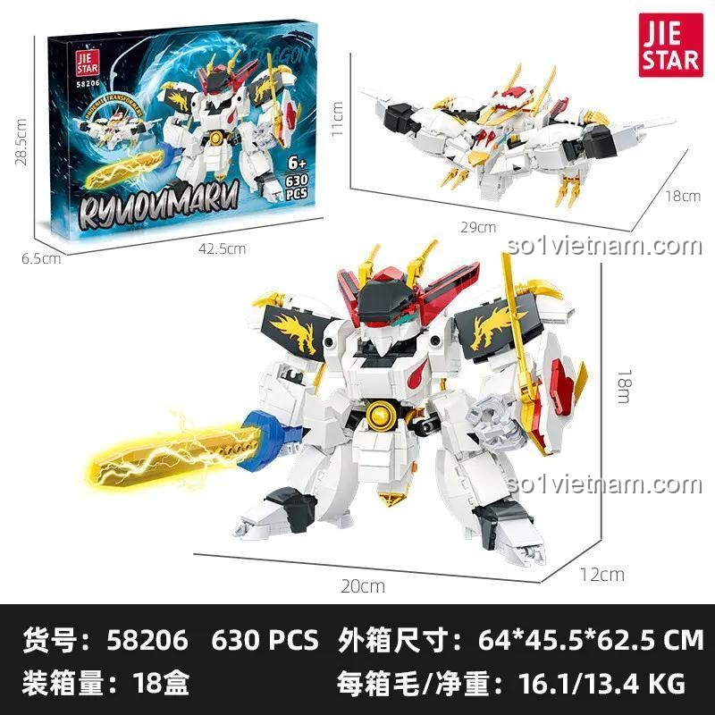 Bộ lắp ghép Robot Rồng Ryuomaru JIESTAR 58206 có tổng cộng 630 mảnh ghép.