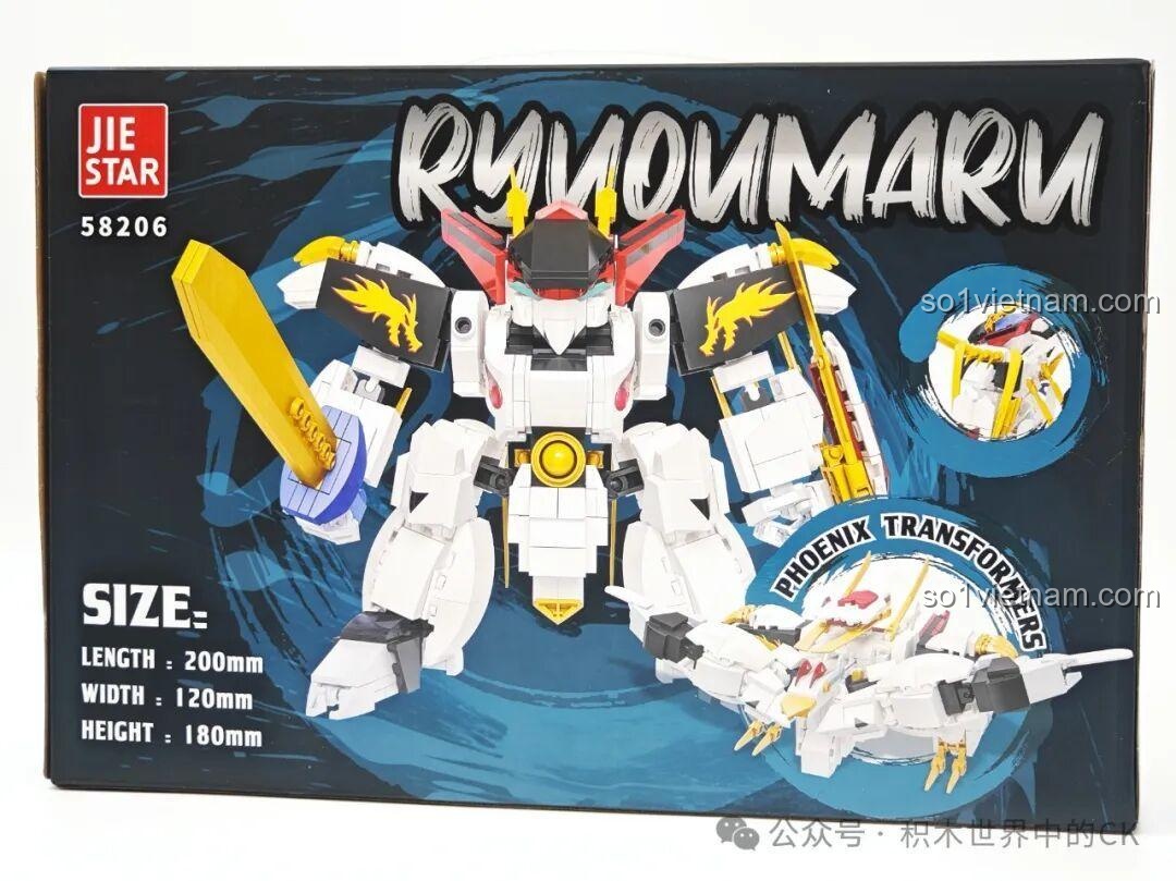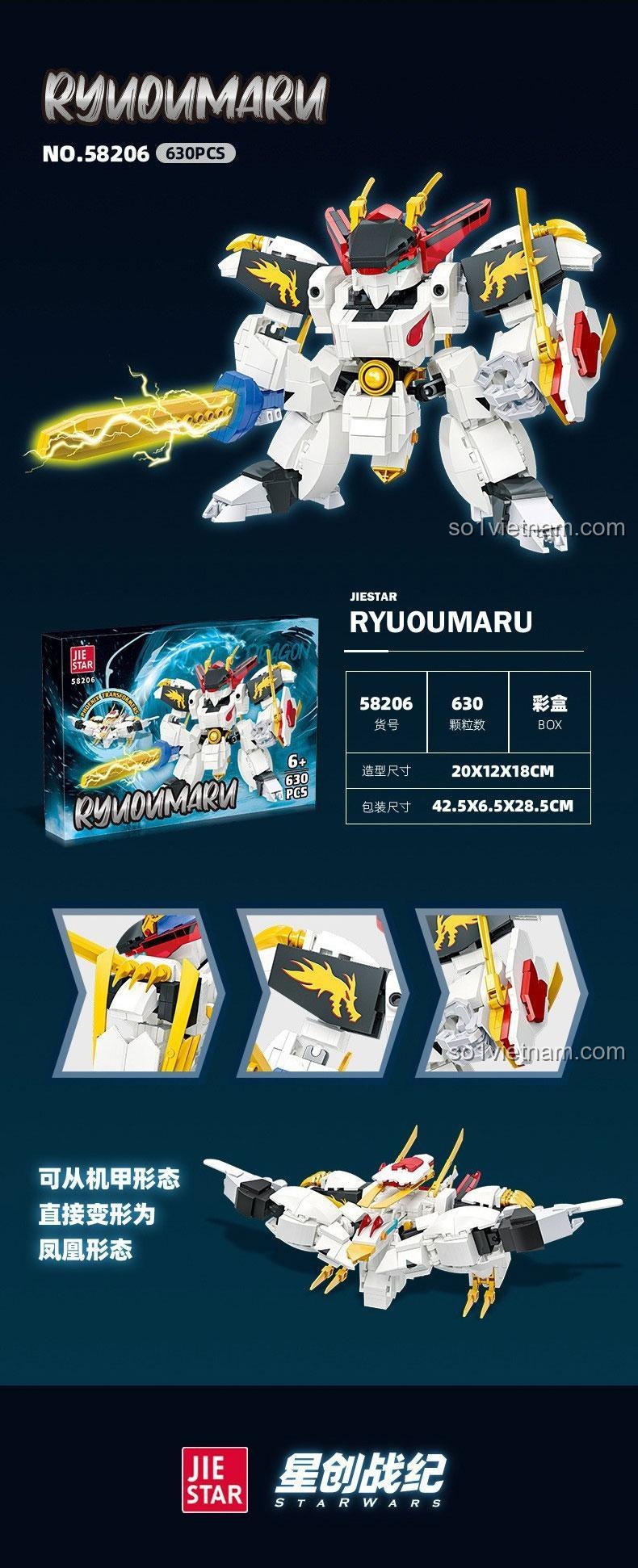 Bộ lắp ghép JIESTAR 58206 có thể biến hình từ dạng Robot Rồng Ryuomaru sang dạng Phượng Hoàng.