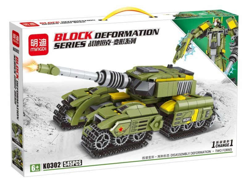 Đồ chơi mô hình K0302 có khả năng biến hình linh hoạt giữa hai dạng chính: một chiếc Xe Tăng Chiến Đấu mạnh mẽ và một Robot Chiến Đấu dũng mãnh. Bé có thể thỏa sức sáng tạo với cả hai hình dạng này.
