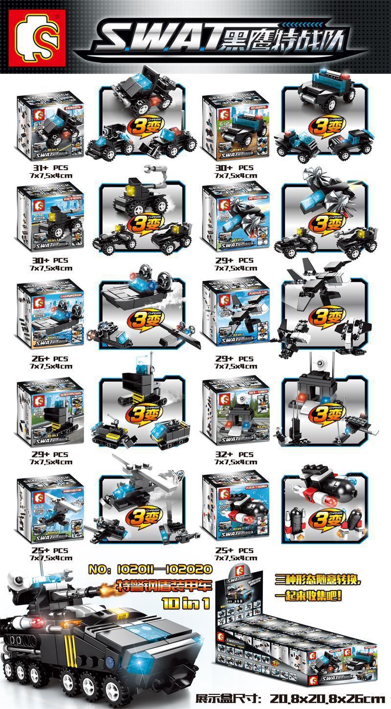 Bộ sản phẩm này cực kỳ đa năng! Bé có thể lắp ráp được 10 mô hình phương tiện đặc nhiệm nhỏ riêng biệt. Mỗi phương tiện nhỏ này lại có thể biến đổi thành 2 dạng khác, tổng cộng là 30 kiểu biến hình nhỏ. Và đặc biệt nhất, 10 mô hình nhỏ có thể kết hợp lại để tạo thành 1 siêu xe bọc thép Khiên Thép khổng lồ. Như vậy, bé có ít nhất 31 cách lắp ráp chính thức!