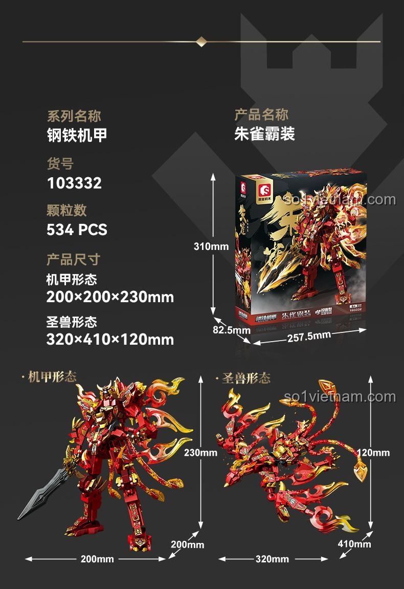 Bộ lắp ghép SEMBO 103332 Mô hình Mecha Chu Tước Bá Trang (534 mảnh ghép) – Biến Hình Linh Hoạt và Biến Hình 2 Dạng