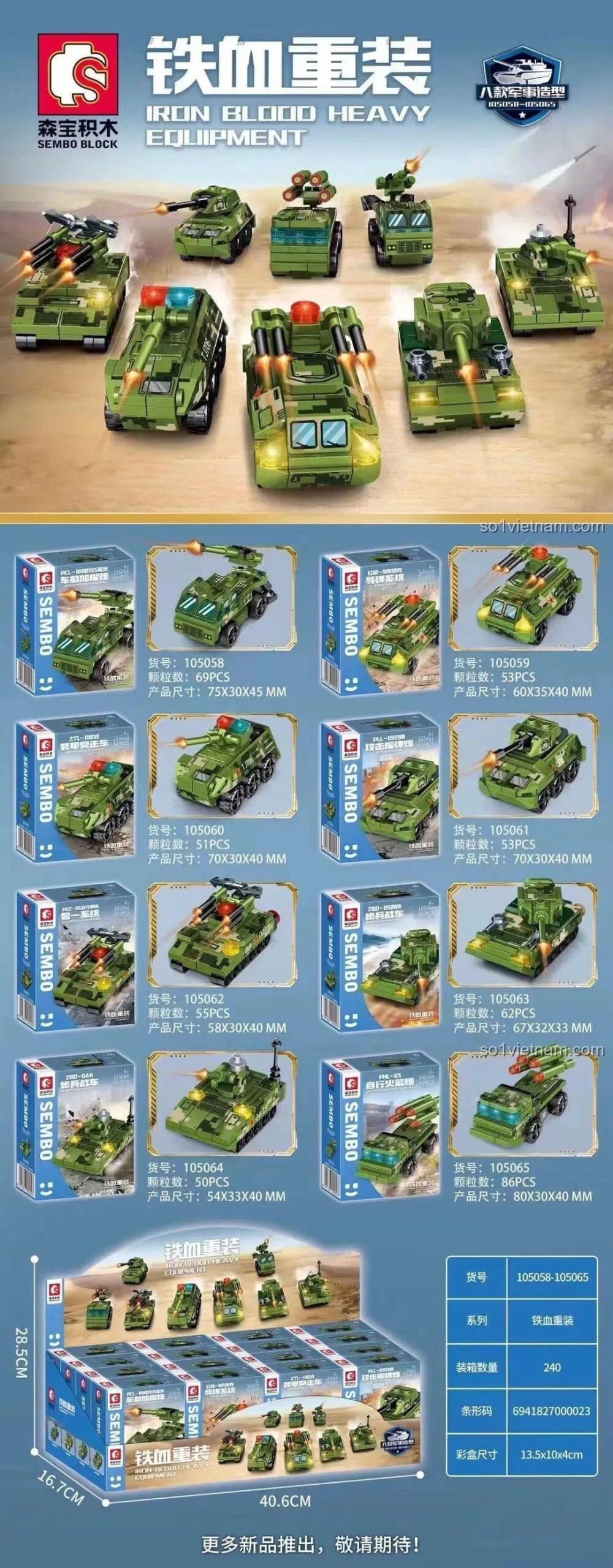 Mẹ có biết, thế giới quân sự luôn ẩn chứa một sức hút mãnh liệt đối với các bé trai, đặc biệt là những cậu bé 6 tuổi đang ở độ tuổi khám phá và học hỏi? Bộ lắp ghép SEMBO 105058-105065 Thiết Bị Hạng Nặng Iron Blood chính là cánh cửa mở ra thế giới đầy kịch tính đó ngay tại nhà. Dù không dựa trên một câu chuyện lịch sử hay tác phẩm hư cấu cụ thể, nhưng mỗi chiếc xe trong bộ đồ chơi Xe Tăng Quân Sự này đều được lấy cảm hứng từ những phương tiện chiến đấu hiện đại, khơi gợi trí tưởng tượng về những trận chiến oai hùng và nhiệm vụ bảo vệ hòa bình. Bé sẽ được hóa thân thành người chỉ huy tài ba, tự tay xây dựng đội quân của riêng mình, từ những chiếc xe tăng dũng mãnh đến các phương tiện hỗ trợ chiến đấu đa năng. Đây không chỉ là một bộ lắp ráp thông thường mà còn là một hành trình khám phá về sức mạnh, chiến lược và tinh thần đồng đội, giúp bé trai 6 tuổi phát triển tư duy một cách toàn diện và đầy hứng thú.