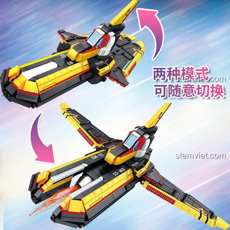 Điểm nhấn nổi bật nhất của bộ đồ chơi lắp ráp Mô Hình Máy Bay Ultraman này chính là khả năng biến hình thần tốc, cho phép bé dễ dàng chuyển đổi giữa hai chế độ: Chế độ bay và Chế độ chiến đấu. Chỉ với vài thao tác đơn giản, chiếc Chiến Cơ Vô Song Ultraman SEMBO 108768 sẽ thay đổi hình dạng, sẵn sàng cho những nhiệm vụ khác nhau. Tính năng này không chỉ tăng cường giá trị chơi mà còn kích thích trí tưởng tượng và khả năng sáng tạo của bé.