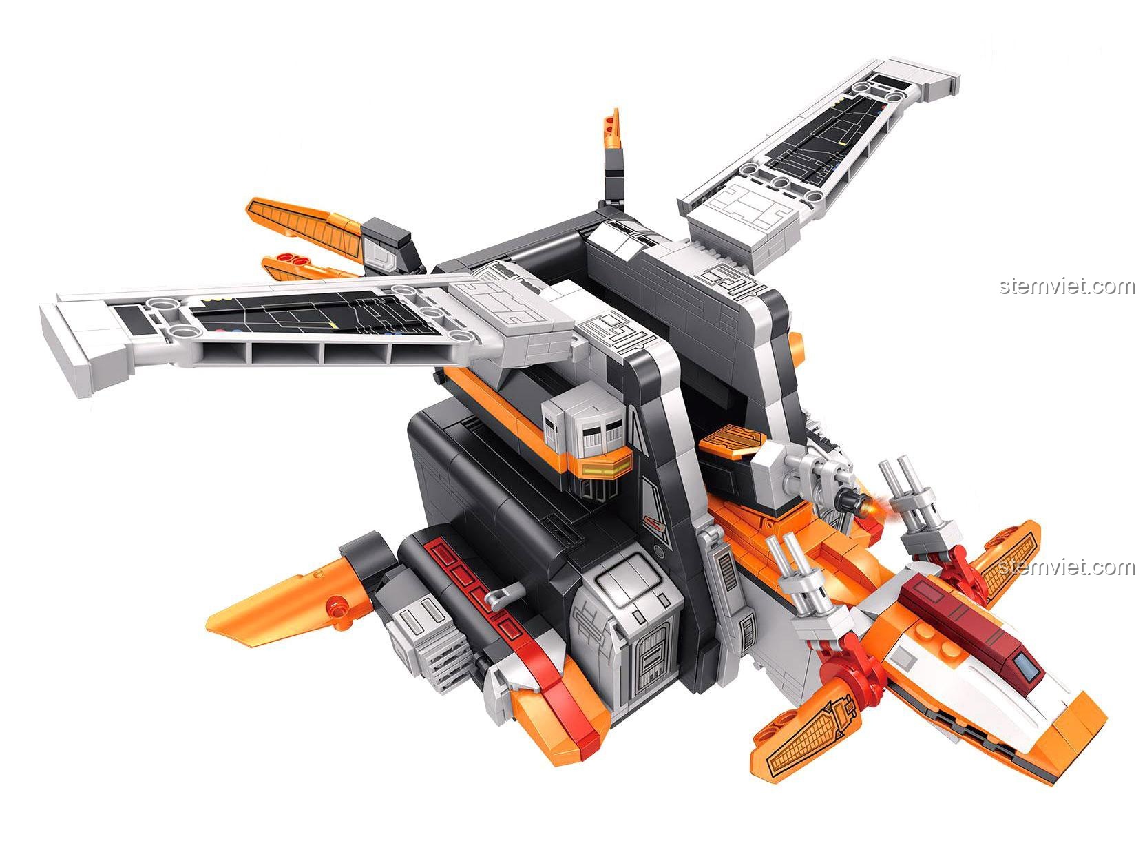 Bộ đồ chơi mô hình SEMBO 108776 Căn cứ Phượng Hoàng Sào Ultraman gây ấn tượng mạnh với thiết kế chân thực và tỉ mỉ. Với màu sắc chủ đạo là xám, đen, cam, trắng và đỏ, mô hình tái hiện sống động căn cứ chỉ huy trong phim. Khi hoàn thành, mô hình có chiều dài khoảng 31.9cm, chiều rộng 30cm và chiều cao 25cm, tạo nên một tổng thể hoành tráng nhưng vẫn vừa vặn để bé dễ dàng tương tác. Điểm đặc biệt của Căn cứ Phượng Hoàng Sào Ultraman này là khả năng biến hình linh hoạt giữa hai chế độ: chế độ căn cứ vững chắc và chế độ bay đầy uy lực. Mỗi chi tiết, từ phòng điều khiển trung tâm, các khoang chứa bí mật cho đến khẩu Pháo Phoenix huyền thoại, đều được chăm chút kỹ lưỡng, mang đến trải nghiệm thị giác mãn nhãn và khơi gợi trí tưởng tượng không giới hạn cho bé. Đây chắc chắn là một bộ xếp hình Căn cứ chỉ huy Ultraman mà mọi fan hâm mộ đều muốn sở hữu.