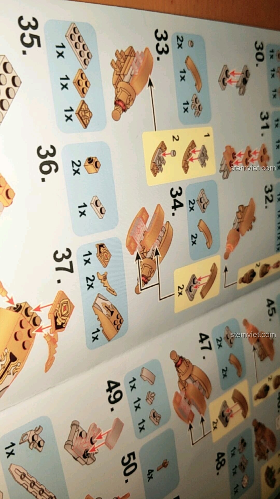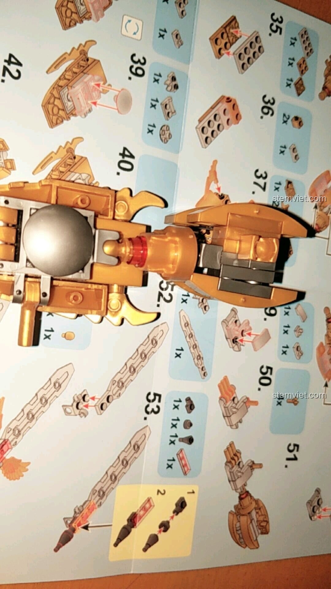 Ngay từ cái nhìn đầu tiên, bộ đồ chơi mô hình Robot Á Sắt SEMBO 11859 sẽ khiến bạn phải trầm trồ bởi thiết kế vô cùng chi tiết và ấn tượng. Với màu sắc chủ đạo là vàng kim lấp lánh, kết hợp cùng các chi tiết xám bạc mạnh mẽ và điểm nhấn đỏ rực rỡ, cỗ máy cơ giáp này toát lên vẻ oai phong, dũng mãnh đúng chất một chiến binh. Từng mảnh ghép được gia công tỉ mỉ, đảm bảo độ khớp nối hoàn hảo, tạo nên một mô hình vững chắc và đẹp mắt. Dù là một bộ lắp ghép giá rẻ, chất lượng hoàn thiện của SEMBO 11859 không hề thua kém các sản phẩm cao cấp. Minifigure Á Sắt đi kèm được thiết kế với trang phục đặc trưng, có thể dễ dàng đặt vào buồng lái của cơ giáp, tạo nên một tổng thể hài hòa và sống động. Kích thước mô hình sau khi hoàn thiện (cao khoảng 18cm, dài 10cm, rộng 8cm) rất vừa vặn để bé cầm nắm, trưng bày hoặc mang theo để khoe với bạn bè. Đây chắc chắn sẽ là một điểm nhấn ấn tượng trong bộ sưu tập đồ chơi của bé trai 6 tuổi nhà bạn.