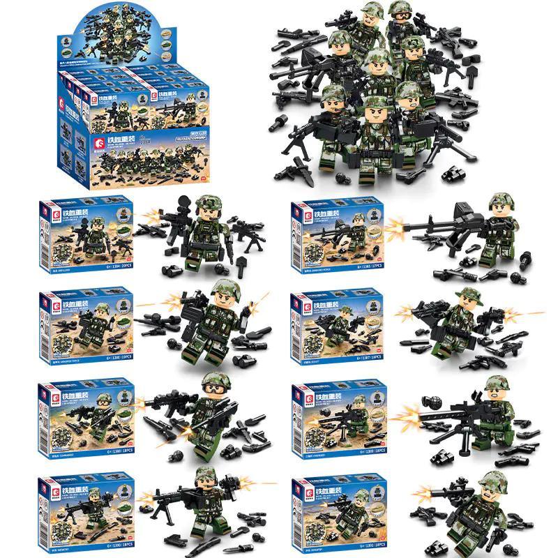 Bộ SEMBO 1388 bao gồm 8 nhân vật lính đặc nhiệm khác nhau, mỗi nhân vật đi kèm với vũ khí riêng biệt.