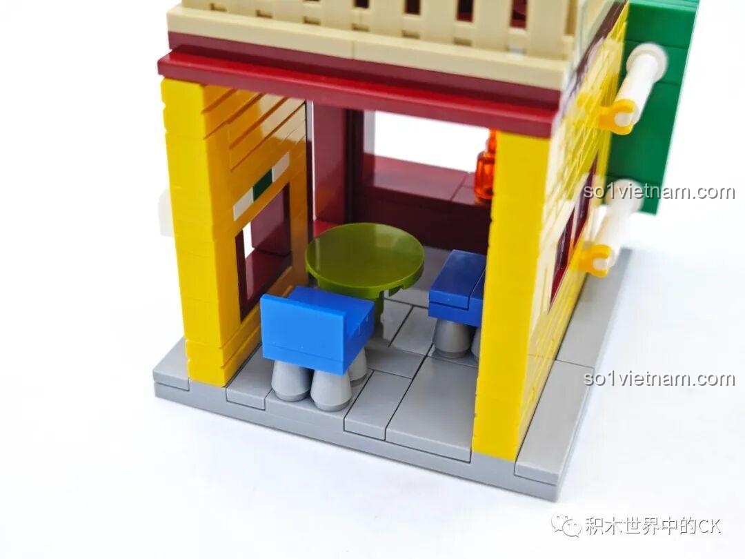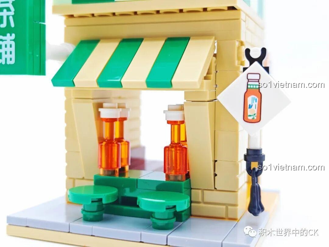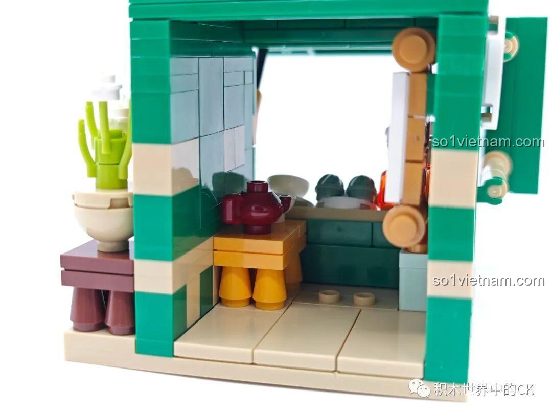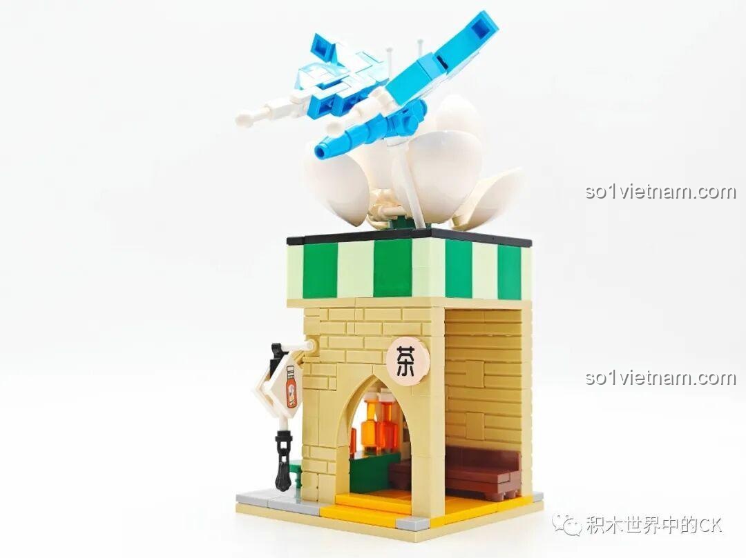 - Minifigure đi kèm: Bộ sản phẩm còn bao gồm một minifigure nhân viên quán trà, sẵn sàng phục vụ khách hàng, mang đến những câu chuyện thú vị khi chơi.