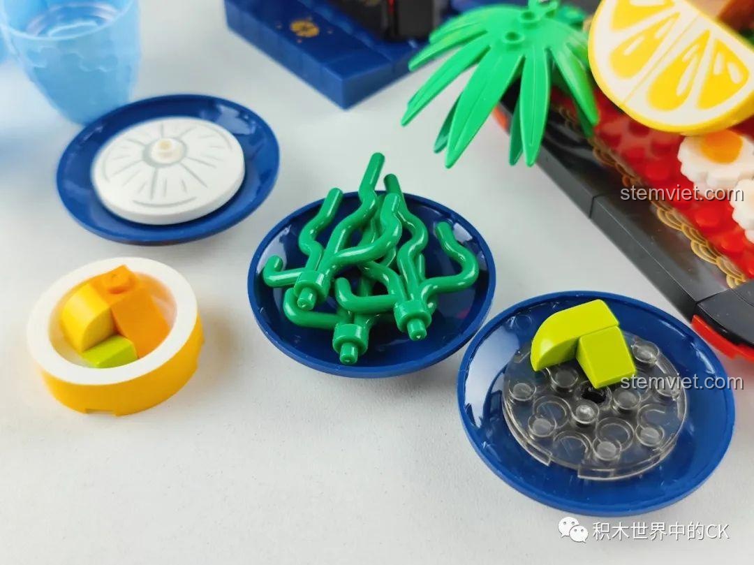 Tính năng nổi bật nhất của bộ sản phẩm này chính là khả năng mô phỏng chân thực các món ăn Nhật Bản. Từ những miếng sushi đầy màu sắc, bát súp miso, đến bộ bình rượu sake và đôi đũa, mỗi chi tiết đều được tái hiện một cách sống động, giúp bé không chỉ lắp ráp mà còn có thể nhập vai, tạo ra những câu chuyện về một nhà hàng sushi của riêng mình. Đây là một bộ đồ chơi mô hình 601414 lý tưởng để trưng bày, làm đẹp thêm không gian phòng khách, phòng ăn hoặc góc học tập của bé, mang đến một nét văn hóa ẩm thực độc đáo và tinh tế.