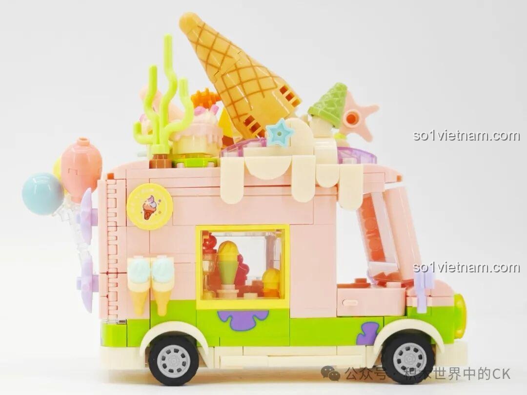 Bộ lắp ghép Xe Bán Kem Patrick Star đi kèm với minifigure Patrick Star đáng yêu, cùng nhiều phụ kiện trang trí như kem ốc quế, kem ly, bóng bay và biển hiệu “Ice Cream”, giúp bé thỏa sức sáng tạo và nhập vai vào câu chuyện bán kem ngọt ngào.