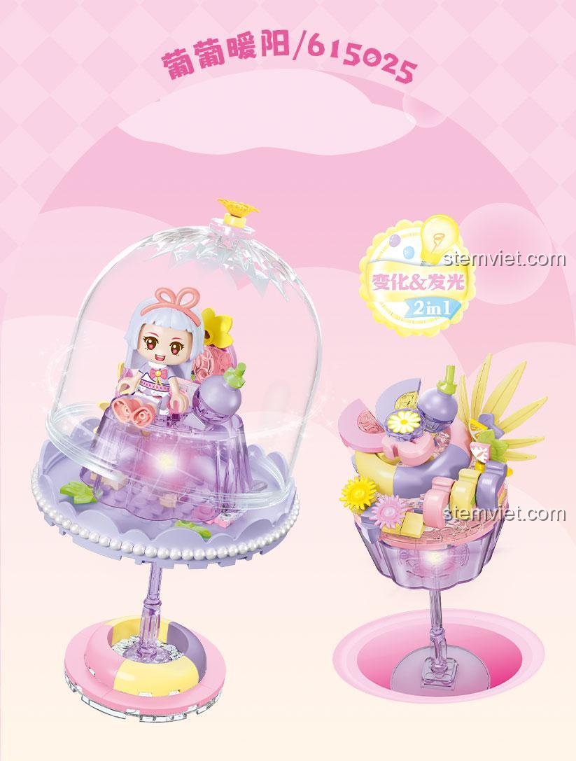 Bộ lắp ghép SEMBO 615025 Đèn Bánh Pudding Lấp Lánh Tím Mộng Mơ (106 mảnh ghép) – Ánh Sáng Lung Linh và Có Đèn LED, Thay Đổi Màu Sắc