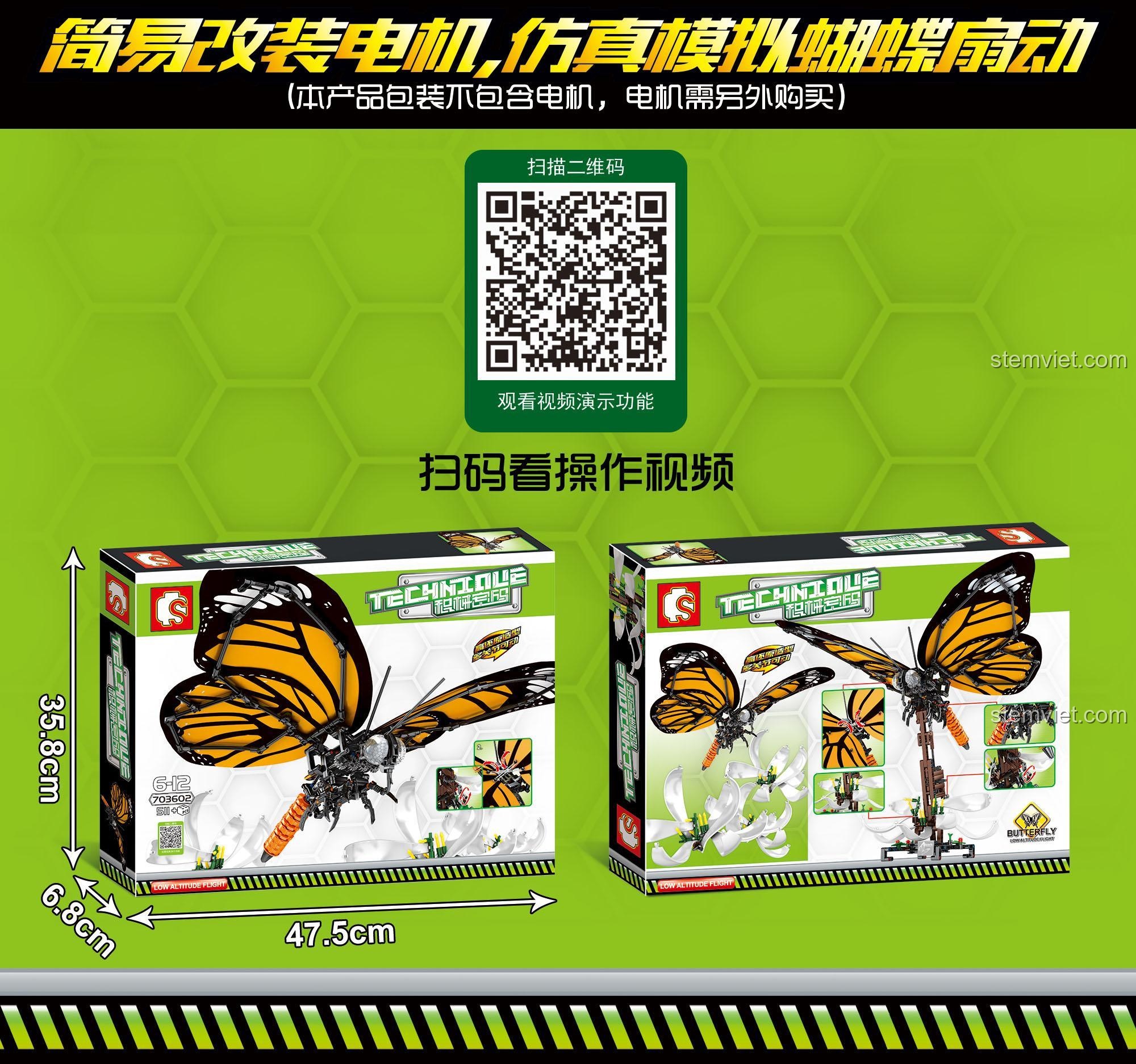 Bộ lắp ghép SEMBO 703602 Mô Hình Bướm Hổ Phách Cơ Khí (511 mảnh) – Cơ Khí Sống Động và Cánh Chuyển Động