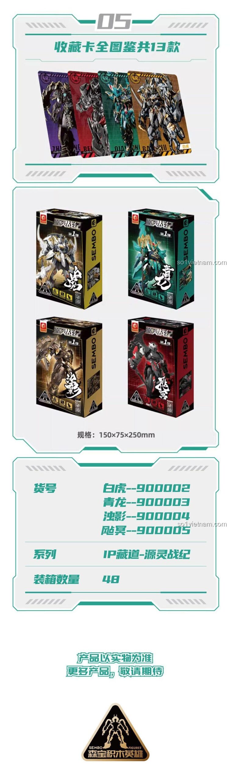 - Kết hợp với các bộ Sembo Nguyên Linh Chiến Kỷ khác: Mua thêm các mô hình Bạch Hổ, Trọc Ảnh, Chiêm Minh (Sembo 900002, 900004, 900005) để tạo thành bộ Tứ Tượng hoàn chỉnh, tăng cường sức mạnh cho đội hình.
