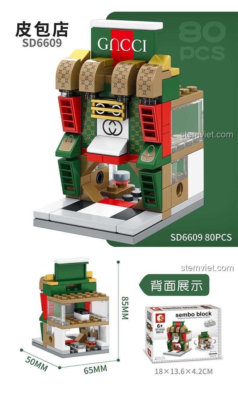 Chào mừng bạn đến với thế giới thu nhỏ đầy mê hoặc của bộ lắp ghép Cửa hàng túi xách Gucci SD6609 từ SEMBO! Bạn có bao giờ mơ ước sở hữu một cửa hàng thời trang sang trọng của riêng mình không? Giờ đây, ước mơ đó có thể trở thành hiện thực ngay trên bàn làm việc hay kệ sách của bạn. Lấy cảm hứng từ những cửa hàng túi xách cao cấp, đặc biệt là thương hiệu Gucci danh tiếng, bộ đồ chơi mô hình này không chỉ là một món đồ chơi mà còn là một tác phẩm nghệ thuật thu nhỏ, mang đến trải nghiệm xây dựng độc đáo và niềm vui khám phá cho bé gái 6 tuổi và cả những người lớn yêu thích kiến trúc mini. Hãy cùng bé bước vào thế giới của thời trang và sự sáng tạo, nơi mỗi mảnh ghép đều kể một câu chuyện về phong cách và đẳng cấp. Đây chắc chắn là món quà tuyệt vời để khơi gợi niềm đam mê và trí tưởng tượng cho con bạn!