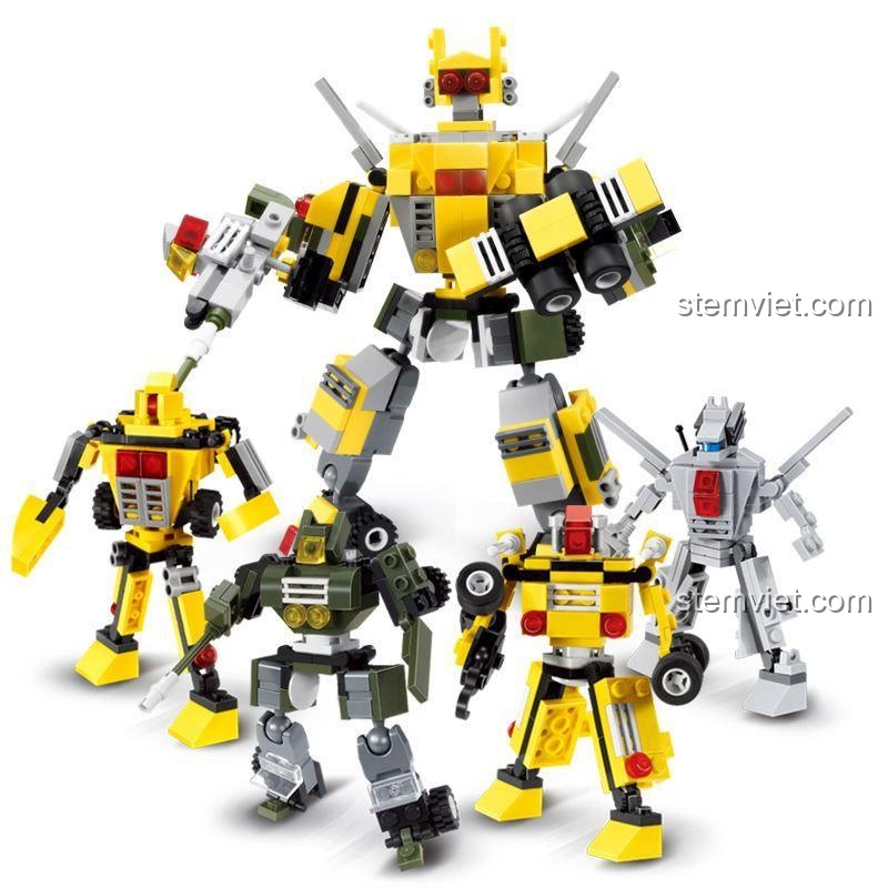 - 8 Mẫu Lắp Ráp Đa Dạng: Bộ sản phẩm cho phép bé xây dựng tới 8 mô hình robot khác nhau, mỗi mô hình mang một phong cách và chức năng riêng, giúp bé không bao giờ cảm thấy nhàm chán.