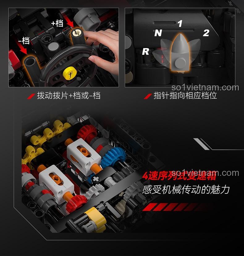 - Hộp số 4 cấp: Cơ chế hộp số 4 cấp được mô phỏng tinh vi, cho phép bạn chuyển đổi các cấp số thông qua cần số, mang đến cảm giác lái chân thực.