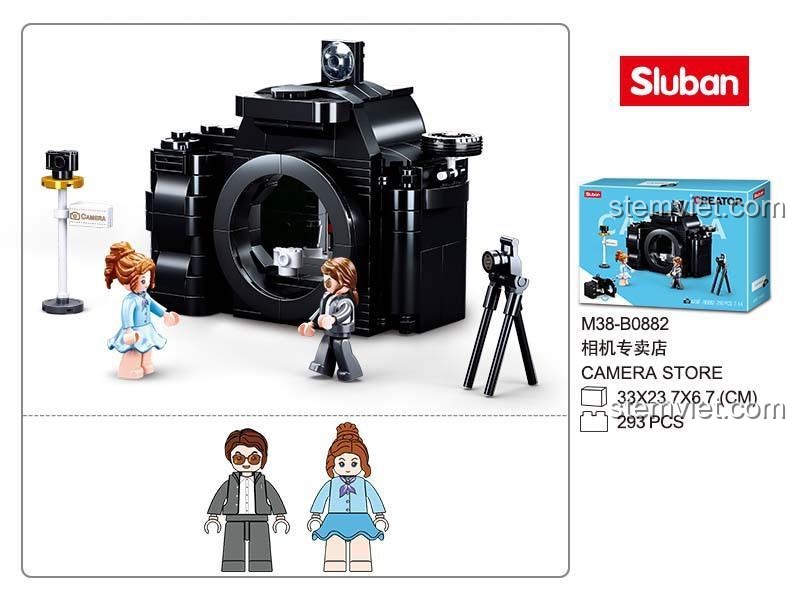 Bộ đồ chơi lắp ráp Cửa hàng máy ảnh Sluban M38-B0882 này sẽ đưa bé vào vai một nhiếp ảnh gia tài năng hoặc một khách hàng sành điệu, khám phá những chiếc máy ảnh nhỏ xinh và phụ kiện chân máy ảnh đi kèm. Đây chắc chắn sẽ là món quà sinh nhật, quà Tết Thiếu Nhi hay phần thưởng xứng đáng cho bé gái yêu thích sự tỉ mỉ và sáng tạo.