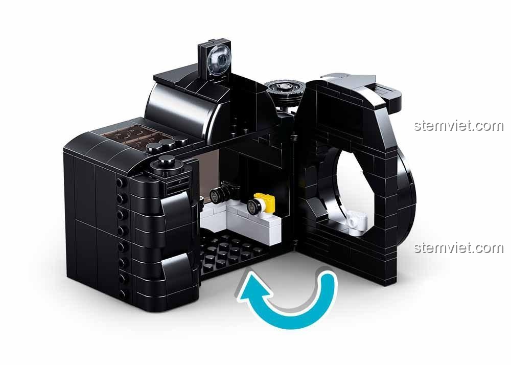 Bộ đồ chơi mô hình Cửa hàng máy ảnh Sluban M38-B0882 không chỉ là một mô hình tĩnh mà còn sở hữu tính năng đặc biệt giúp tăng cường trải nghiệm chơi của bé. Điểm nhấn nổi bật nhất chính là khả năng mô hình có thể mở ra, biến chiếc máy ảnh thành một không gian chơi tương tác. Khi mở ra, bé sẽ khám phá được nội thất chi tiết của cửa hàng, nơi trưng bày các máy ảnh nhỏ và phụ kiện.