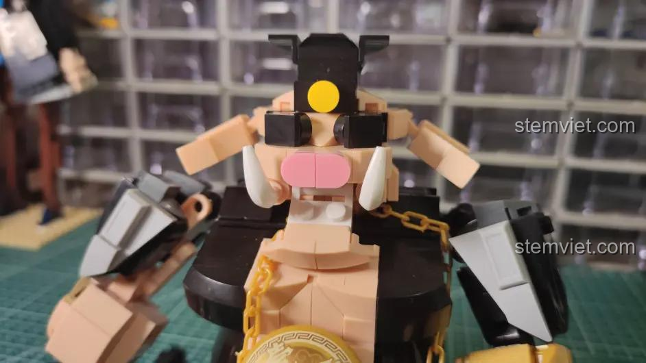 Đồ chơi mô hình Trư Bát Giới Sluban M38-B1009 không chỉ gây ấn tượng bởi thiết kế độc đáo mà còn bởi các tính năng tương tác vượt trội, mang lại trải nghiệm chơi đầy thú vị cho bé trai 6 tuổi. Điểm nhấn nổi bật của mô hình này chính là hệ thống khớp nối linh hoạt. Đầu của Trư Bát Giới có thể xoay 360 độ và có khả năng ngẩng lên, cúi xuống, cho phép bé tạo ra nhiều biểu cảm và tư thế khác nhau. Các khớp tay cũng rất linh hoạt, giúp mô hình có thể cử động đa dạng, mặc dù cần lưu ý một chút về khớp khuỷu tay có thể dễ bị tháo rời do dung sai trong quá trình sản xuất, nhưng điều này không ảnh hưởng nhiều đến tổng thể trải nghiệm.