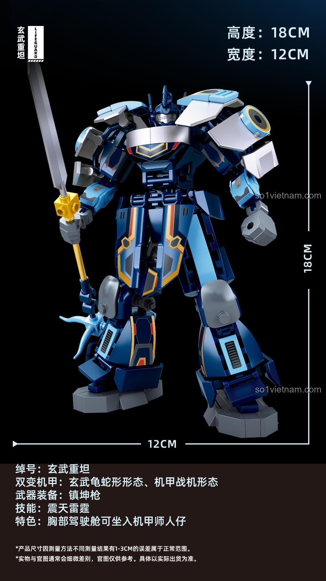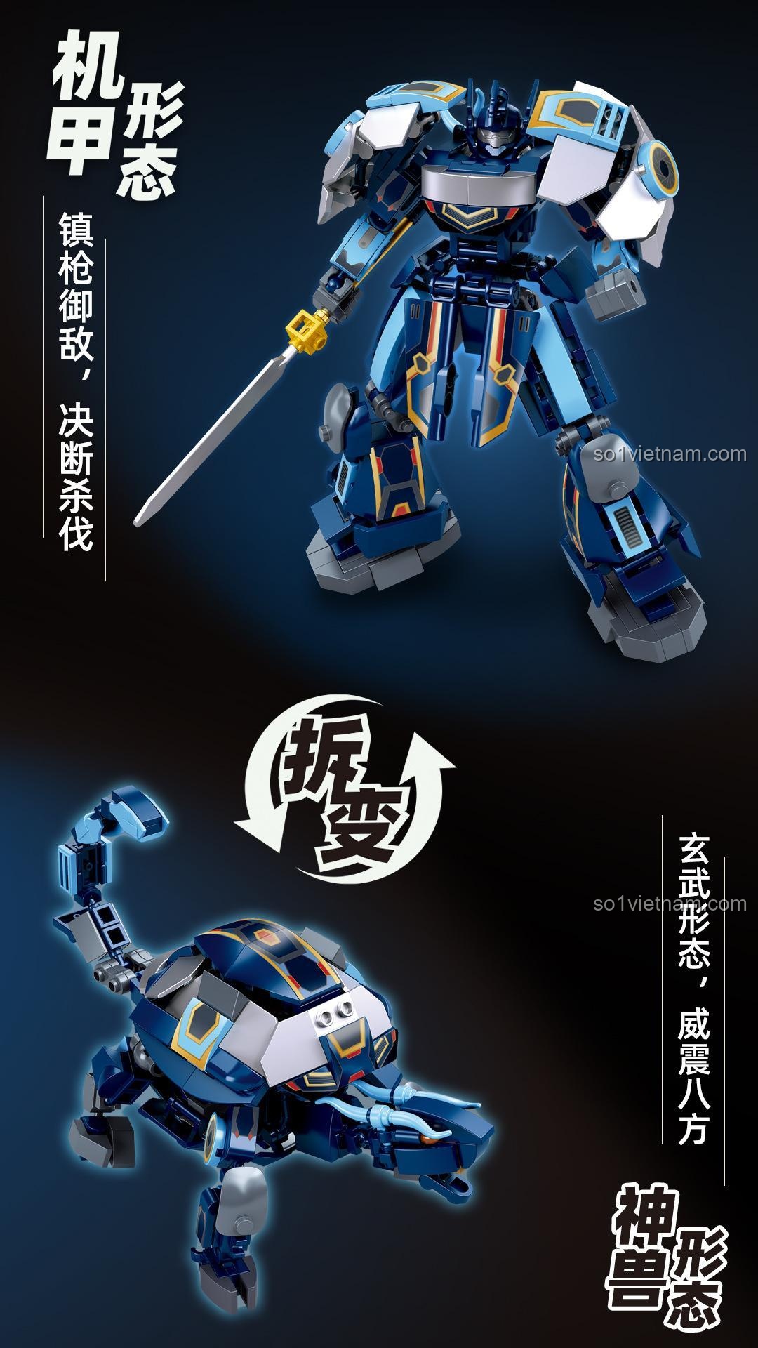 Bộ lắp ghép Sluban M38-B1278 Cơ giáp Huyền Vũ có khả năng biến hình thành 2 dạng chính: dạng cơ giáp chiến đấu và dạng thần thú Huyền Vũ (hình thái rùa rắn), mang đến trải nghiệm chơi đa dạng và thú vị.