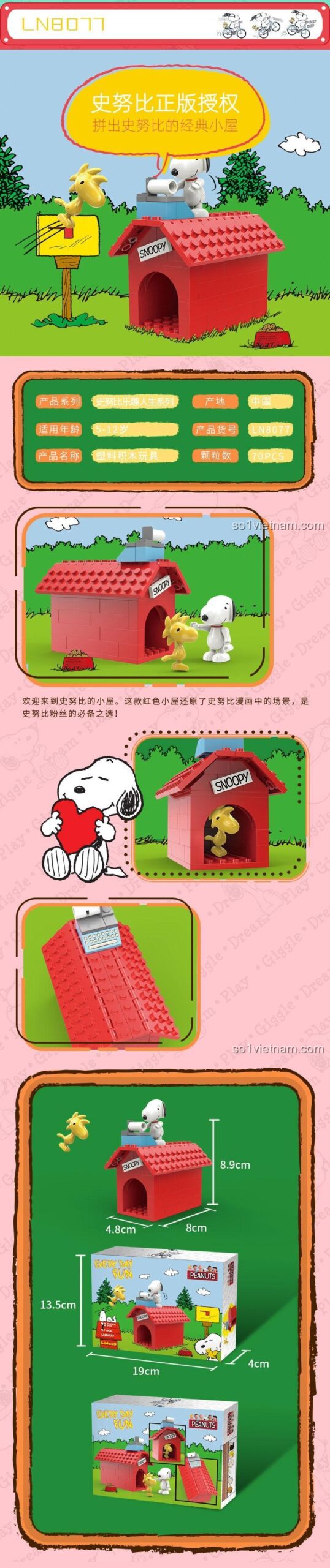 Đừng bỏ lỡ cơ hội mang về niềm vui và kỷ niệm đáng nhớ cho bé yêu với bộ lắp ghép Snoopy Dog House LN8077!